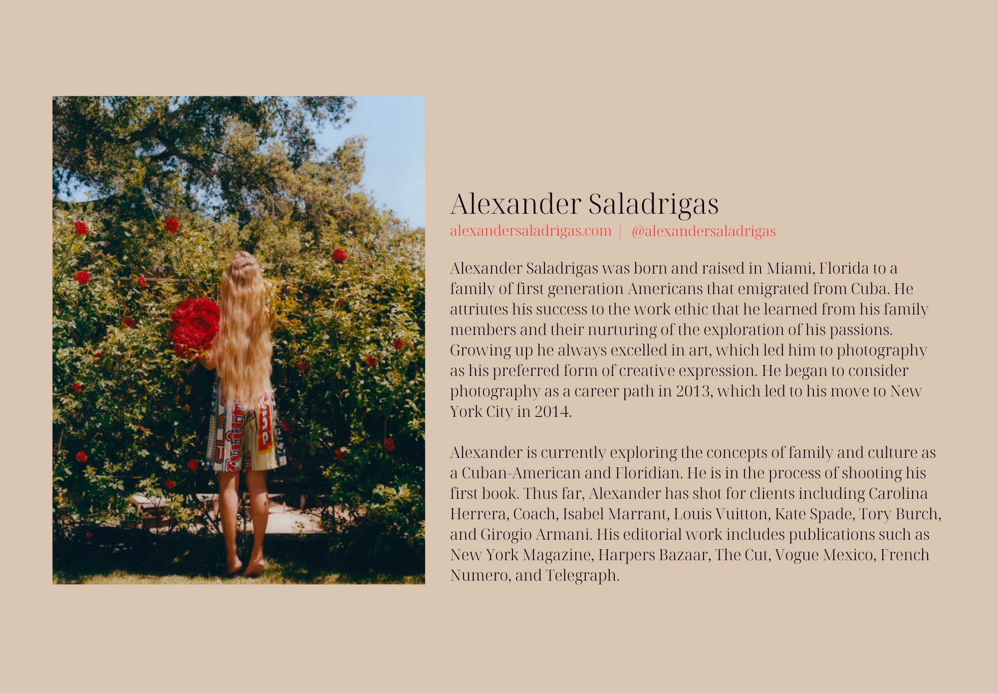 Because de la revoluciøn represents 12 photographers, I created a templated deck that can easily be populated with imagery for a photographer. This was created in Canva for the purpose of allowing real time edits and user-friendly arranging to those who are to use the template.